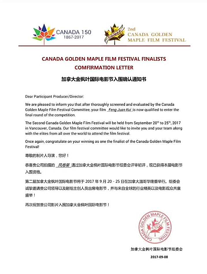 近日获悉,由影视学院教师、著名制壶大师周胜敏老师担纲制作人及艺术总监,知名导演罗帅执导的传奇故事片《风卷葵》成功入围第二届加拿大金枫叶国际电影节。