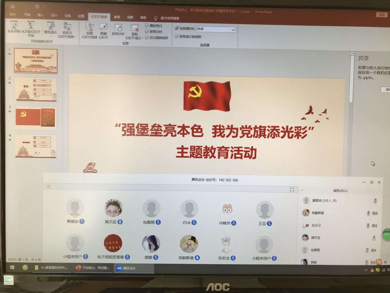 首先左书记从四个方面对影视学院前一阶段防疫工作进行总结,肯定了学院在师生日常防疫监管、党建工作、在线教学、实习生管理、政治宣传等方面取得的成效。全体教职工做到了思想上重视,工作上细致。对于涌现出来的敢于当担冲在一线进行志愿服务的师生们表示感谢。左书记要求全体党员依托“学习强国”、党员微信群、QQ群等在线学习平台加强政治理论学习,疫情结束之前坚决做到不信谣、不传谣、不造谣,要求两个支部加强基层党组织建设,对本学期支部工作做计划,坚持利用腾讯会议、学习强国视频会议等平台开展好三会一课等,保证组织生活正常化,发挥好对党员管理、教育、监督的作用。