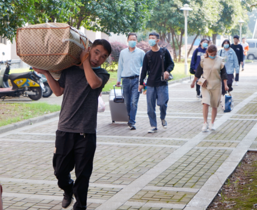 踏着早晨明媚的阳光, 新生从全国各地赶来。