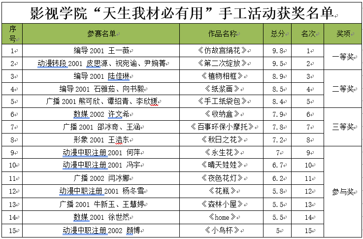 三等奖 — 动漫中职注册2001 何萍  三等奖 — 广播2001 邵冰奇 王涵