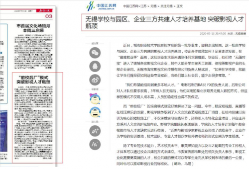 1 成立全国数字影视职业教育集团集团化办学是职业教育深化产教融合、促进资源共享、服务经济发展、培养创新人才的重要载体和有效途径。我院认真贯彻落实国家、省市职业教育集团化办学精神,牵头成立了全国数字影视职业教育集团,依托行业,对接产业,牵手企业,共同制定人才培养方案、共同开发课程教材,共同建设校内外实训基地,有力地推动了专业建设的可持续发展和人才培养质量的稳步提升。该集团的成立,填补了全国性数字影视方向的职教集团空缺。  2 入选容艺短视频工厂项目2020年影视学院作为无锡唯一、全国27所院校之一入选教育部人文交流容艺短视频工厂项目的首批共建院校签约。