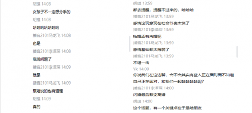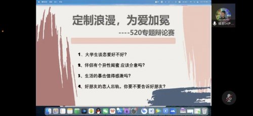 520来啦!你准备如何度过?按照以往的惯例,追求精致浪漫的cp,大概会用一顿烛光晚餐来精心打造专属于两个人的甜蜜,电影院,餐厅里,马路上处处都充满着粉色泡泡。但影视学子们这次并不想挤入这拥挤的人群中,他们打造起了自己的“专属浪漫”,共同相约了一场特殊的“520”盛宴。 这场盛宴的地点正是我们熟悉的“腾讯会议”,而在这里开一场激烈的辩论赛,正是属于影视学子在520的“私有浪漫”。 看到这些奇葩话题,你是否也想参与其中,和我们一起展开一场激烈的“唇枪舌战”呢! 面对这样的辩题,奇葩辩手们毫不畏惧,大胆开麦在直播间中畅所欲言,为了自己的立场勇敢发声。老师们也化身为“吃瓜群众”,和同学们一起展开激烈讨论。让我们来看看“吃瓜群众”们都说了些什么吧! 在辩论的最后,于阔老师也向同学们提出了希望,他告诉同学们在以后的生活中,要学会具备以下三种能力,“心理耐力”、“钝感力”和应激能力“。 对于参加这场辩论的影视学子来说,这不仅是一场辩论赛,更是一堂别开生面的情感教育课。在这场辩论中,每个人都坚定着自己在感情中的立场,勇敢的为爱发声,这正是属于青年的任性与洒脱,这是难能可贵的美好。 通过此次活动,我们知道了什么是正确的爱,成熟的爱,负责的爱,我们该如何去爱。大学生活中,“爱“这个字因为青春年少显得更加美好。但我们必须要明白的是,真正的爱,一定是一种责任,如果你在爱情中受伤了,那么请不要失去对爱的信念,亲密关系需要试错和锤炼。愿屏幕前的你们,也可以拥有这样的勇气,不悲伤,不犹豫,不彷徨。 |