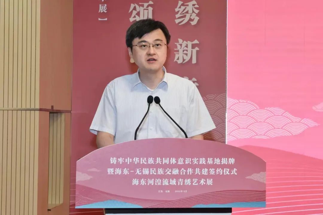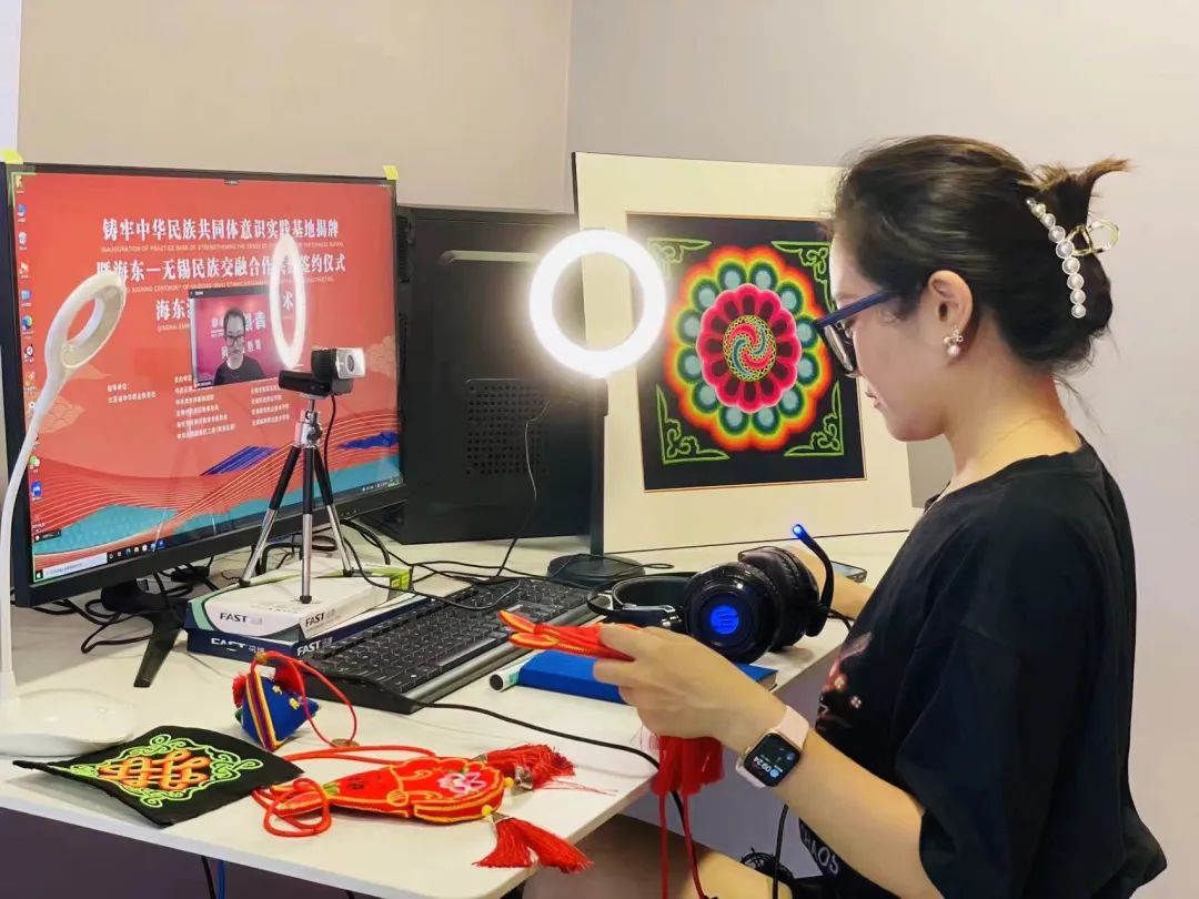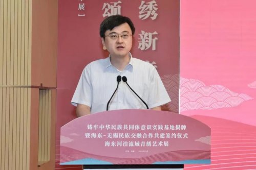 6月28日上午隆重举行铸牢中华民族共同体意识实践基地揭牌暨海东-无锡民族交融合作共建签约仪式“海东河湟流域青绣艺术展”。此次活动由江苏省中华职业教育社指导,无锡市委统战部、海东市委统战部、无锡市民族宗教事务局、海东市民族宗教事务委员会、无锡高新区党工委(新吴区委)主办,无锡市新吴区委统战部、无锡市新吴区民族宗教事务局、无锡城市职业技术学院、青海高等职业技术学院、无锡科技职业学院承办,青海省刺绣行业协会、青海非遗协会协办。 无锡市委常委、统战部部长周常青在讲话中指出,本次围绕青绣传统非遗文化传承,举办“海东河湟流域青绣艺术展”是各族群众互嵌式发展、深化民族交往交流交融的生动实践,也是两地在文化领域深度合作、共赢发展中打造的创新典范。铸牢中华民族共同体意识,充分认识构建各民族共有精神家园的特殊重要性,在地方和高校积极探索铸牢中华民族共同体意识理论研究和实践创新。要依托实践基地,加强铸牢中华民族共同体意识教育实践研究,并以民族地区非遗文化传承发展为媒介,发挥职业教育人力资源优势,积极助推文化产业创新创业,实现两地民族非遗文化交融发展。 海东市委统战部副部长刘昀发表讲话。他希望,通过此次活动,进一步加大无锡、海东两市精准对接、高效衔接,实现共同发展,推动东西部协作取得更加丰硕的成果,两地民族团结进步事业实现高质量发展。与会领导为铸牢中华民族共同体意识实践基地、无锡-海东民族非遗文化交融发展中心、民族文化研究与推广领军人才工作室和非遗文化工作室揭牌。 无锡城职院瞿立新校长、青海高职田建军校长、无锡科院孙兴洋校长、签署三校共建协议,并为受聘的非遗文化导师现场颁发聘书。三校共绘同心圆,聚力夯实铸牢中华民族共同体意识实践基地建设基础。 揭牌仪式后,与会领导及参会嘉宾观看了“海东河湟流域青绣艺术展”。本次展览是在无锡城市职业技术学院与青海高等职业技术学院在2021年签订民族传承技艺共建单位后又一深度融合的力作。依托无锡城市职业技术学院影视学院与青海高等职业技术学院青绣文创产品开发与运营团队的平台优势,适应当代刺绣艺术继续发展创新的需要。历经八个多月的努力,以“启、承、转、合”四个维度展开研究、教学、实践、创作。除了展出的 1095 件青绣作品,无锡城市职业技术学院影视学院师生通过对青海刺绣艺术文化技艺传承理念、技艺研习与创新的挖掘,设计与制作了600余件青绣文创产品,融合青海厚重的区域特征和浓厚的传统特色,呈现青海省“大美山水、多彩人文、和谐生活、指尖技艺”四美图,受到了与会嘉宾一致好评。 本次展览设“青绣非遗代表作品”、“青绣文创创新产品”、“青绣经典老物件区”、“一丝一线·感受青绣”区域,同时邀请三位具有代表性的非遗传承人参展并做现场展演体验交流。无锡城市职业技术学院影视学院教师进行青绣产品直播带货,做青海绣娘指尖经济的守护人。 结束后,影视学院与青海刺绣行业协会会长苏晓莉进行交流,打算携手培育具有地域和民族特色的青绣自主品牌,通过非遗品牌大会等活动提升青绣品牌知名度和影响力。影视学院与青绣协会联手打造个性化、定制化的青绣产品,以及美观实用的青绣日用品,提高青绣整体品质和市场竞争力。同时加强传统工艺相关知识产权保护,综合运用著作权、商标权、专利权、地理标志等多种手段,保护创新成果,培育青绣品牌。