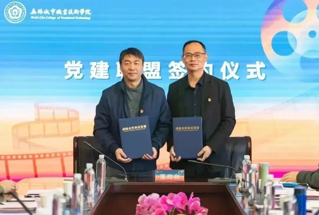 3月13日上午,无锡城市职业技术学院与无锡教育电视台协同发展战略合作框架协议签约仪式暨影视学院促就业“攻坚行动”招聘会在我校隆重举行。校党委书记郁宝荣、党委副书记俞力元、纪委书记吴开勇、党政办公室副主任时荣、实训基地管理中心副主任陶红、影视学院党政负责人,及无锡教育电视台台长程宏强、副台长顾仲高、副台长许沁、融媒宣传中心主任顾洁、传媒活动中心主任周磊、办公室主任兼终身教育中心主任邱乾熠、总编室主任陆丹等共计13人出席会议。 会上,郁书记代表学校发表讲话。他指出,要发挥新媒体矩阵传播优势,与无锡教育电视台展开全面广泛、全面深度、全面长效地合作,通过共同打造全媒体人才联合培养实训基地、全国数字影视职业教育集团、定期指导、阶段性授课、学术讲座等方式,加强双方在人才培养、业务培训的叠加,构建特色鲜明的全媒体人才培养体系,培养德智体美劳全面发展的高素质应用型人才,为区域经济社会高质量发展注入新能量。最后,在与会人员的见证下,校媒双方领导共同签署协同发展战略合作框架协议及党建联盟协议,共同为“全媒体人才联合培养实训基地”、“‘融•媒’党建联盟”、“现场工程师学院”揭牌。 签约仪式后,影视学院促就业“攻坚行动”招聘会在大报告厅同步举行。教育电视台融媒宣传中心副主任李铁锤、总编室副主任严梦麟和融媒技术中心主任许晓菡进行宣讲会,分别为同学们详细介绍了无锡教育电视台五大中心岗位需求等,并解答了同学们关于就业求职的有关疑问,为影视学子开拓“赛道”、提供“舞台”。招聘会上,同学们现场投递简历,与教育电视台中心负责人充分互动,为实现更高质量实习就业做准备。