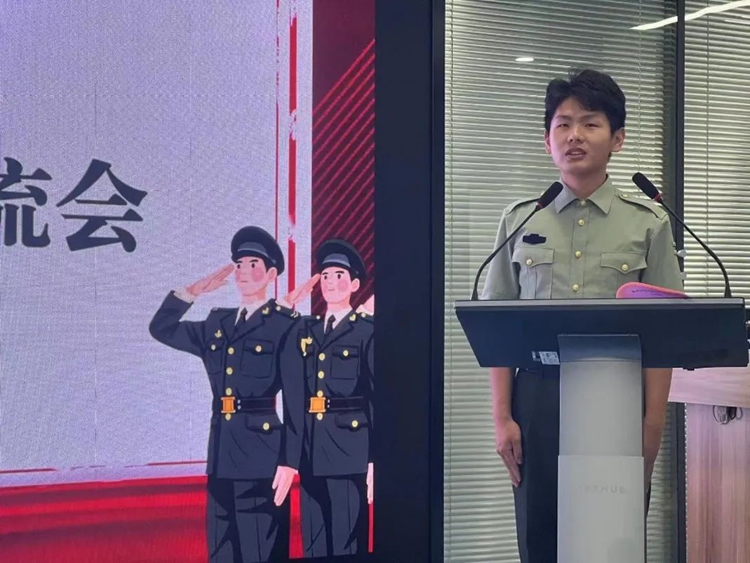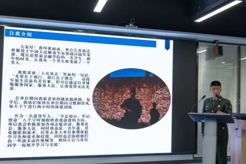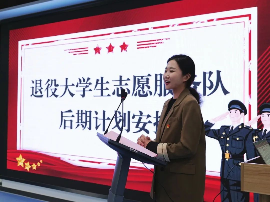 最后,胡琪老师为大家介绍“光影军行”队名的由来,“行”既代表了退役大学生来自“行伍”的身份,又表达了退役大学生将要去执行的志愿“行动”。在未来,光影军行志愿服务队将在思想政治引领、爱国主义教育、红色基因传承等方面发挥积极作用,为校园增添炽热的军旅元素。