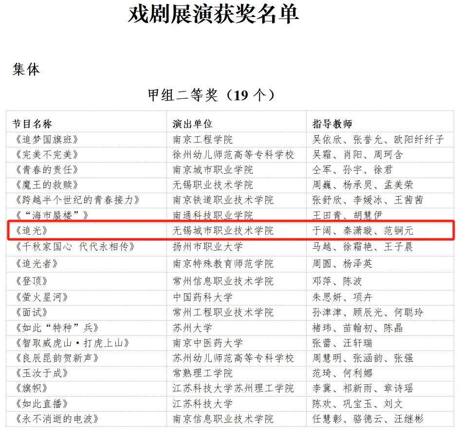 今年10月,由江苏省教育厅主办的江苏省第七届大学生艺术展演顺利举办。近日,活动评选结果揭晓,影视学院共3项作品荣获奖项,其中二等奖2项、三等奖1项。 本届艺术展演活动的主题是:“厚植家国情怀,涵养进取品格”。我院紧跟主题,充分发挥学院专业特色。 在艺术实践工坊赛项中以东西部协作铸牢中华民族共同体为切入点编写了《青绣·吴韵》非遗艺术与影视实践工作坊案例。 在戏剧展演赛项中我院原创红色话剧《追光》以我校创办人顾倬先生第三子革命人士顾衡的生平为原型,讲述了他在南京担任特支书记期间与国民党反动派英勇斗争不屈不挠的革命故事。从家国情怀,到无畏牺牲,展现了一个有血有肉的革命形象。 摄影作品《在人间》充分展现无锡人文景象,通过普通人的视角观察社会百态。让学生走出去,走进社会利用专业知识进行创作实践。 江苏省大学生艺术展演活动每三年举办一次,由江苏省教育厅主办,是我省目前规格最高、规模最大、影响最广的大学生艺术盛会。旨在落实立德树人,深入实施素质教育的根本任务,将引领学生树立正确的审美观念、陶冶高尚的道德情操、塑造美好心灵和践行社会主义核心价值观融入展演活动全过程。 今后,影视学院将继续发挥专业优势,利用专业特长,以作品为抓手,以成绩为导向,开展学院各项教学工作做好育人工作。为学校高质量发展作出更多的成绩。(文:于阔;图:秦潇璇、大艺展组委会、潘汉清、韩谊诚、朱命宇;审核:秦潇璇)