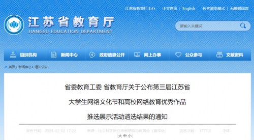 我院学子在第三届江苏省大学生网络文化节和高校网络教育优秀作品推送展示活动中取得佳绩 | |||
