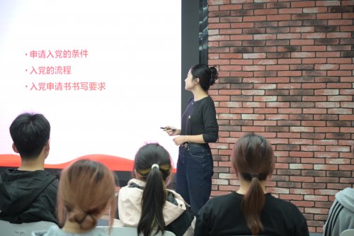 “青年是祖国的未来和希望,也是党的未来和希望,国家的发展都得益于一代代青年的努力和奋斗”,习近平总书记勉励青年学生“人生的扣子从一开始就要扣好”。为牢记习近平总书记的嘱托,进一步加深新生对党的基本知识的了解,增强同学们的入党积极性和主动性,激发新生的入党热情,进一步端正入党动机,影视学院学生党支部开展“党建引领新启航,扣好大学新生‘第一粒扣子’”主题党日活动。 新生入党启蒙教育 影视学院学生党支部于10月11日开展2024级新生入党启蒙教育,由支部书记胡琪主讲,支部全体党员教师及2024级70余名新生参与其中。胡琪书记依次从申请入党的条件、入党的流程和入党申请书书写要求介绍了入党的相关知识。 她表示希望同学们树立正确的人生观、世界观、价值观,从提出入党申请那天起,就应当努力实践自己的入党志愿,按照党员标准严格要求自己,把党的理论和纲领内化为自觉行动,正确认识自己,严于解剖自己,明确自己在哪些方面还没有达到党员标准,找出解决问题和弥补不足的办法,在党组织的关心和培养下,学习更有目的、行动更有方向、人生更有价值,一步一个脚印地把自己锻炼成为有共产主义觉悟的先锋战士,无愧于入党申请书中那句“请党组织在实践中考验我”。 接下来,影视学院学生党支部组织委员张明月老师对入党申请书的书写要求进行了补充讲解。 无锡红色党史微党课 入党启蒙教育后,作为无锡城市职业技术学院学生宣讲团成员的编导2301班杜兰同学为新生展开了一节别开生面的主题为“党史中的无锡记忆”红色党史微党课。跟随着她的脚步,让新生进一步了解到了百年辉煌党史,追寻了无锡记忆,更加坚定了扛起时代重任的决心。 设置入党申请书投递站 活动后,学院学生党支部在“光影”一站式社区服务站特别设置了入党申请书投递处,新生可以将书写规范的入党申请书直接进行投递。 在短短3天的时间里,投递处就接收到来自大一大二学生90余份入党申请书。一份份情真意切、字迹工整的入党申请书,表达了影视学子对加入党组织的憧憬和向往,也表达了影视学子肩负时代使命勇挑时代重任的决心和信心。 新生有话说 播音2401 王政丹 我作为青年学生,怀着无比激动且兴奋的心情书写入党申请书,当我书写这一封入党申请书时,我便决心坚定自己的理想信念,看着铿锵有力的入党誓词,总能感觉有一团火在心底燃烧,我想让它越烧越大,越烧越旺,为了自己的信仰和目标,更为了共产主义事业而奋斗! 广播(中职转段)2401 钱羿汛 我怀着对党的热爱之情,深入了解了党的性质、宗旨和纲领,对党充满了崇敬与向往。我愿意接受党组织的一切考验,不断改进自己的不足,在思想、学习、工作和生活等各方面都严格要求自己,展现出青年学生的良好形象! 通过此次党日活动,增强了新生对中国共产党的认识,进一步加深了新生对党的百年奋斗的认知,提高了新生的政治觉悟与思想素质,确立了同学们“爱国爱党,从自身做起,从现在做起”的思想,为新生更好地开启大学生活、入团入党奠定了坚实的思想基础。(文稿:胡琪;摄像:余嘉乐;审核:徐群征) |