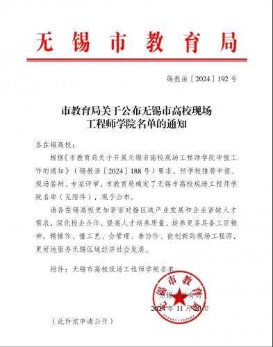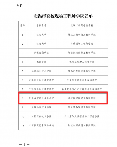 我校虚拟现实现场工程师学院获评无锡市高校现场工程师学院 | |||