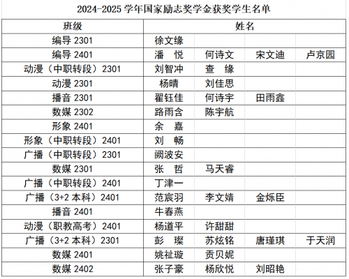 | 影视学院2025年高校国家励志奖学金公示 | |||